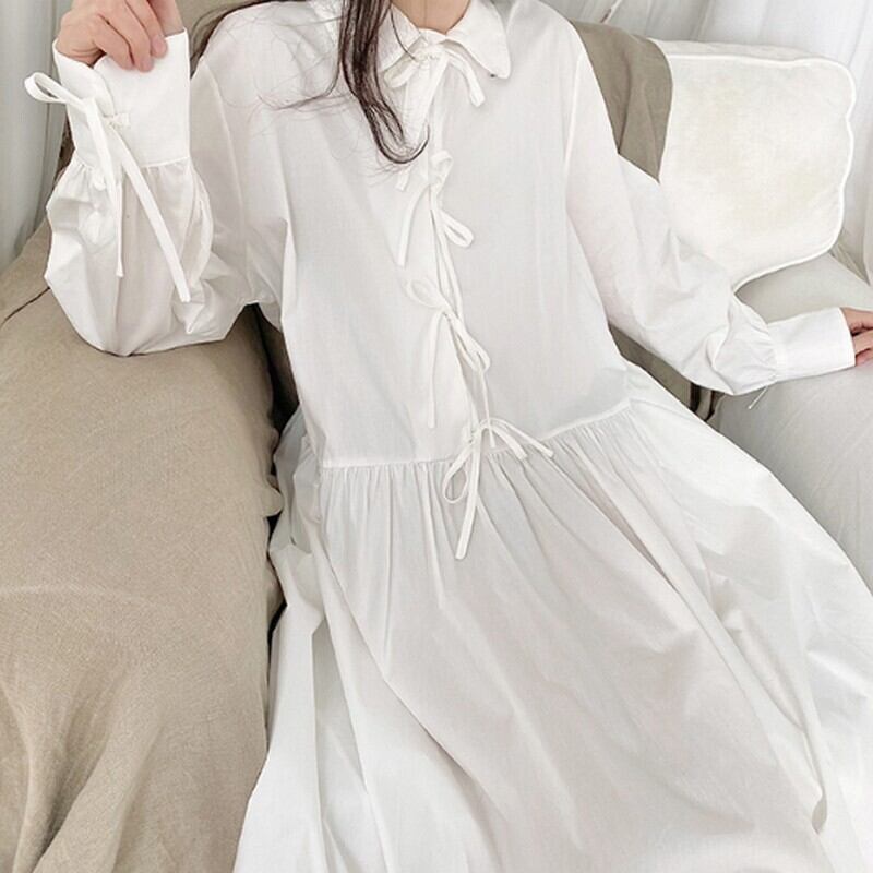 ルーズボウタイシャツワンピース O007